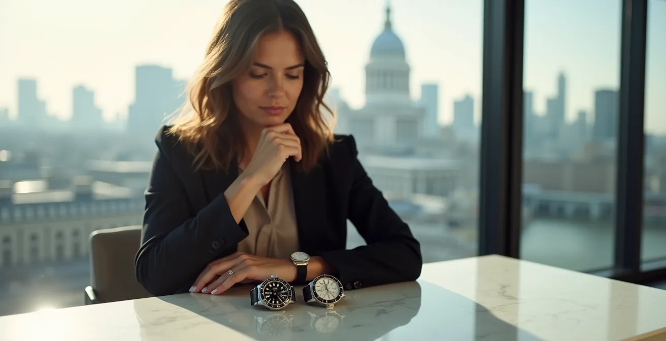 Conventional wisdom offers vague advice: “choose a classic design” or “stick to neutral metals.” This approach overlooks the most critical factor for a pragmatic buyer: value. Not just resale value, but the strategic value a watch brings to your personal brand and the financial intelligence of a ‘cost per wear’ calculation. We often forget that a high-quality timepiece is a working asset, not a disposable accessory. It should be as thoughtfully considered as any other significant investment.